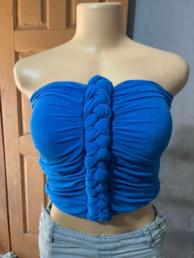 Top bustier bleu tressé
