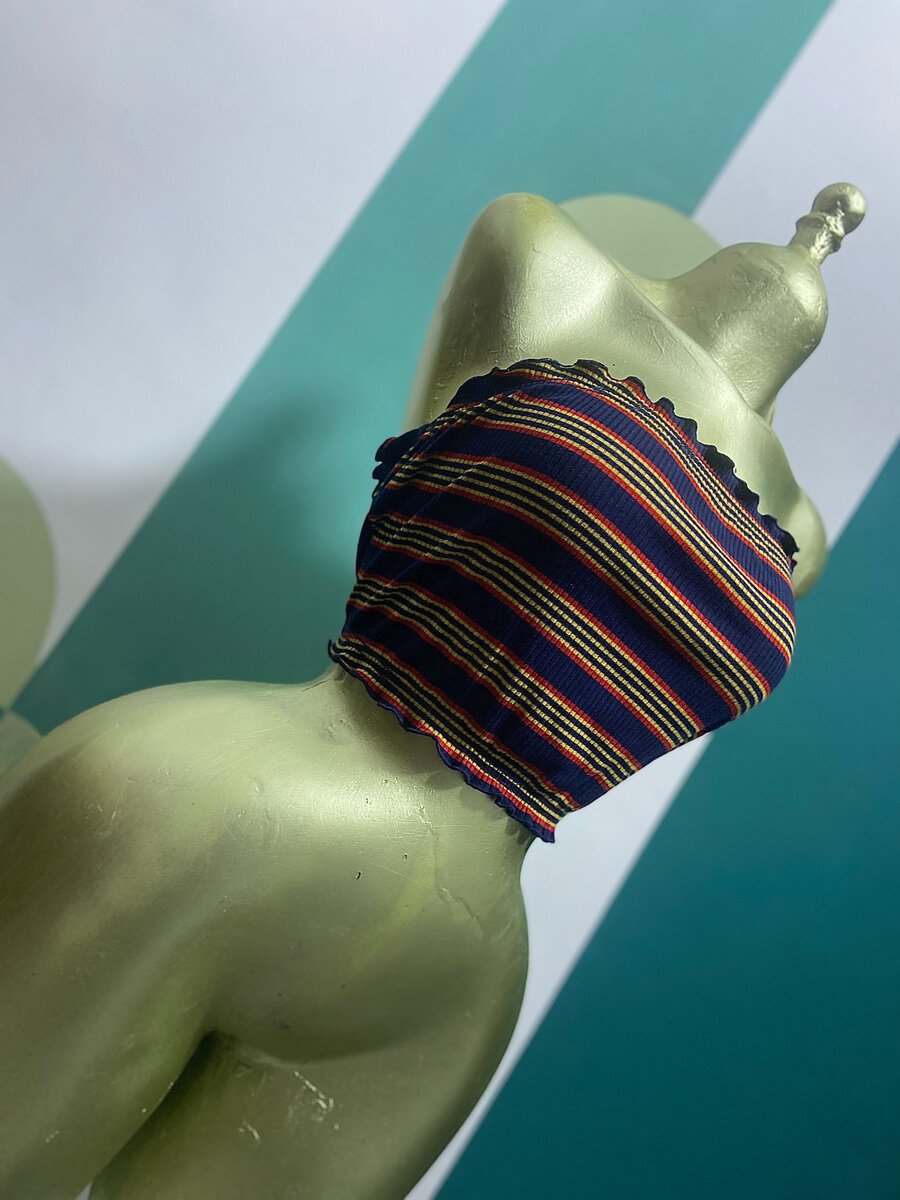 Ce top bustier rayé coloré est parfait pour ajouter une touche de style et d’élégance à votre garde-robe. Fabriqué avec des matériaux doux et extensibles, il épouse les lignes de votre corps pour un confort optimal. Parfait pour les sorties estivales ou les soirées en ville, il s'accorde facilement avec un jean ou une jupe pour un look chic et décontracté.