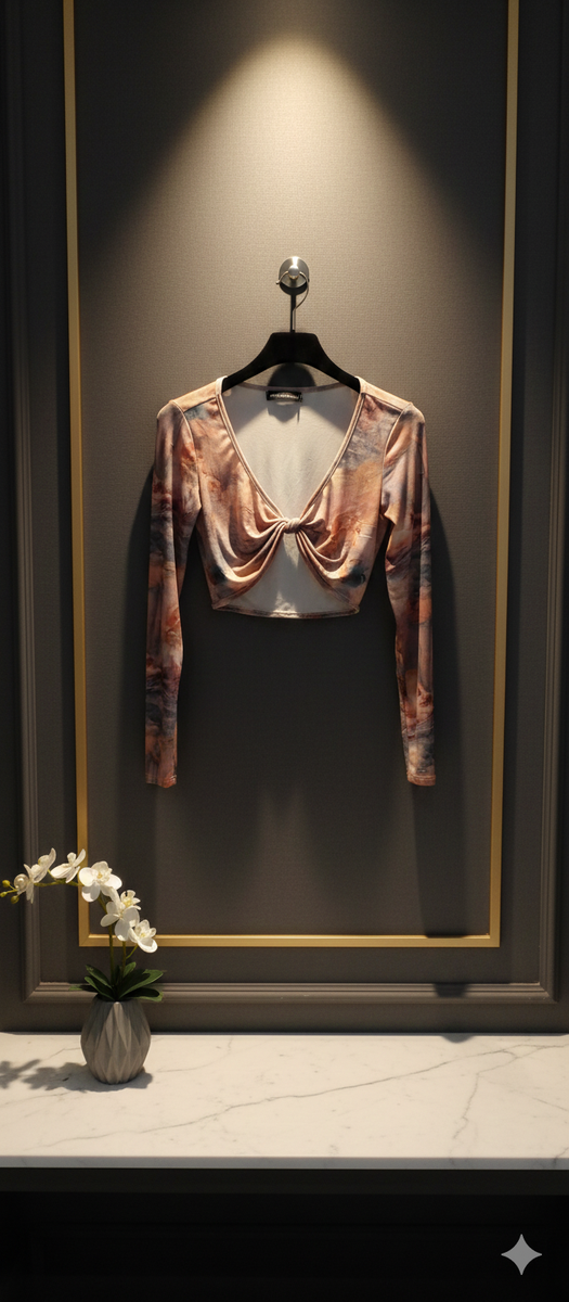 Découvrez ce top court chic à manches longues avec un design noué unique. Parfait pour une soirée en ville ou un look casual, ce haut s'accorde facilement avec vos tenues préférées. Confort et style combinés en une seule pièce!