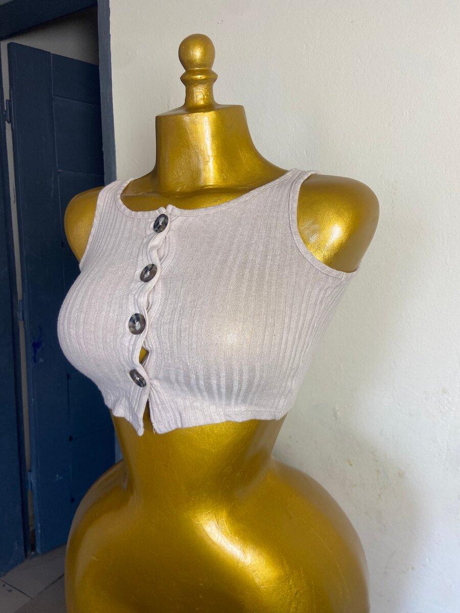 Ce top court à boutons est idéal pour un look estival décontracté. Confectionné en matière côtelée confortable, il est parfait pour les journées chaudes. Associez-le avec un jean taille haute pour un style tendance. Un must-have pour votre garde-robe d'été!