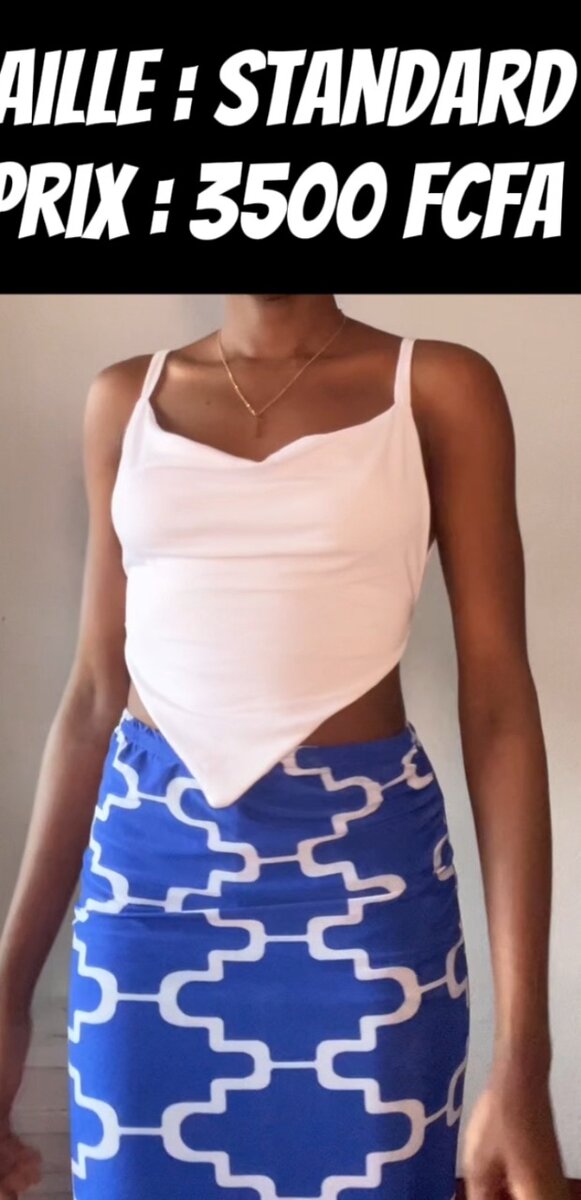Ce top court blanc est parfait pour un look estival chic. Fabriqué en tissu doux et extensible, il offre un confort optimal tout en mettant en valeur votre silhouette. Idéal pour les sorties décontractées ou les soirées entre amis, il se marie facilement avec différents styles de bas. Ne manquez pas cette pièce de mode incontournable pour votre garde-robe!