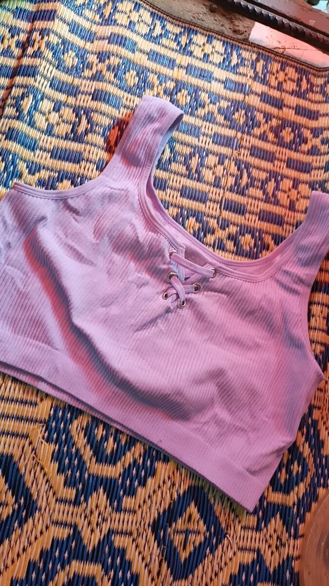 Ce top court lilas, en matière douce et côtelée, offre un design moderne avec un laçage frontal. Parfait pour les journées décontractées ou pour ajouter une touche tendance à votre look, il assure confort et style. Idéal pour être porté seul ou sous une veste légère, conviendra parfaitement à vos tenues estivales.
