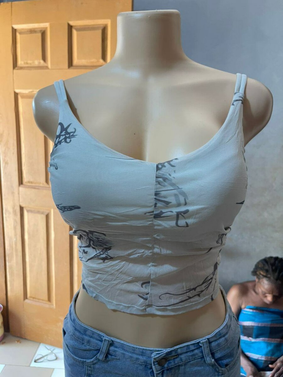 Optez pour ce top court moderne gris, parfait pour vos sorties décontractées. Conçu pour allier confort et style, il se marie parfaitement avec un jean ou une jupe. Les fines bretelles ajoutent une touche féminine. Idéal pour un look estival chic!