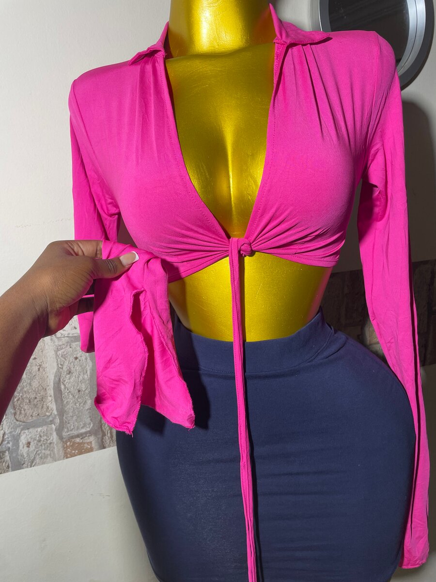 Découvrez notre top court rose, idéal pour un look audacieux et moderne. Avec ses manches longues et sa coupe nouée, il est parfait pour une soirée ou une sortie urbaine. Son design flatteur met en valeur la silhouette, offrant confort et style. Fabriqué dans un tissu de qualité, c'est un incontournable de votre garde-robe.