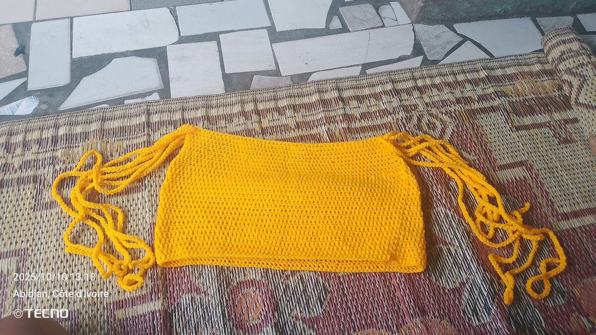 Découvrez notre top en crochet jaune vibrant, fait main pour une touche unique et estivale. Parfait pour les journées chaudes, ce haut léger et respirant est idéal pour la plage ou une sortie décontractée. Associez-le à un jean ou une jupe pour un look boho chic irrésistible.