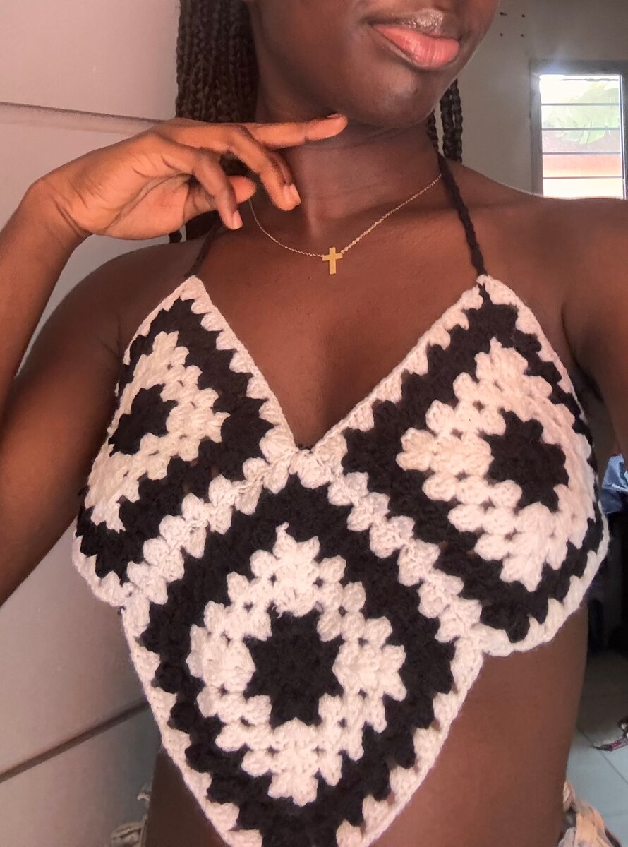 Découvrez ce superbe top crochet noir et blanc, parfait pour ajouter une touche bohème et élégante à votre style. Fait à la main avec des motifs géométriques accrocheurs, il est idéal pour les festivals, la plage, ou une sortie décontractée en ville. Associez-le à un jean taille haute ou une jupe pour un look tendance et unique. C'est un choix parfait pour les journées estivales et un incontournable pour votre garde-robe!