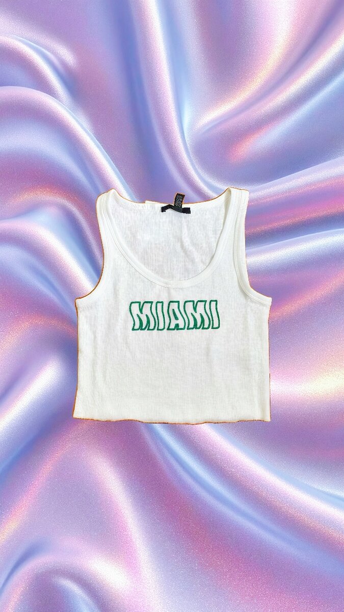 Top blanc écriture verte Miami Un style original et lumineux : le vert apporte une touche dénergie et de fraîcheur parfaite pour lété
