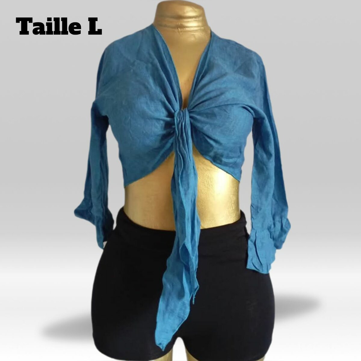 Découvrez ce top noué bleu élégant pour femme, taille L. Idéal pour un look chic et décontracté, ce vêtement se marie parfaitement avec une jupe ou un jean. Confectionné dans un tissu léger, il garantit un confort optimal tout au long de la journée. Parfait pour vos sorties, ce top est un choix tendance et polyvalent.