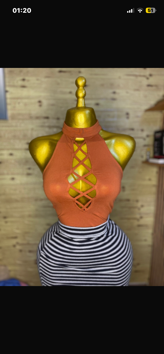 Top orange à lacets