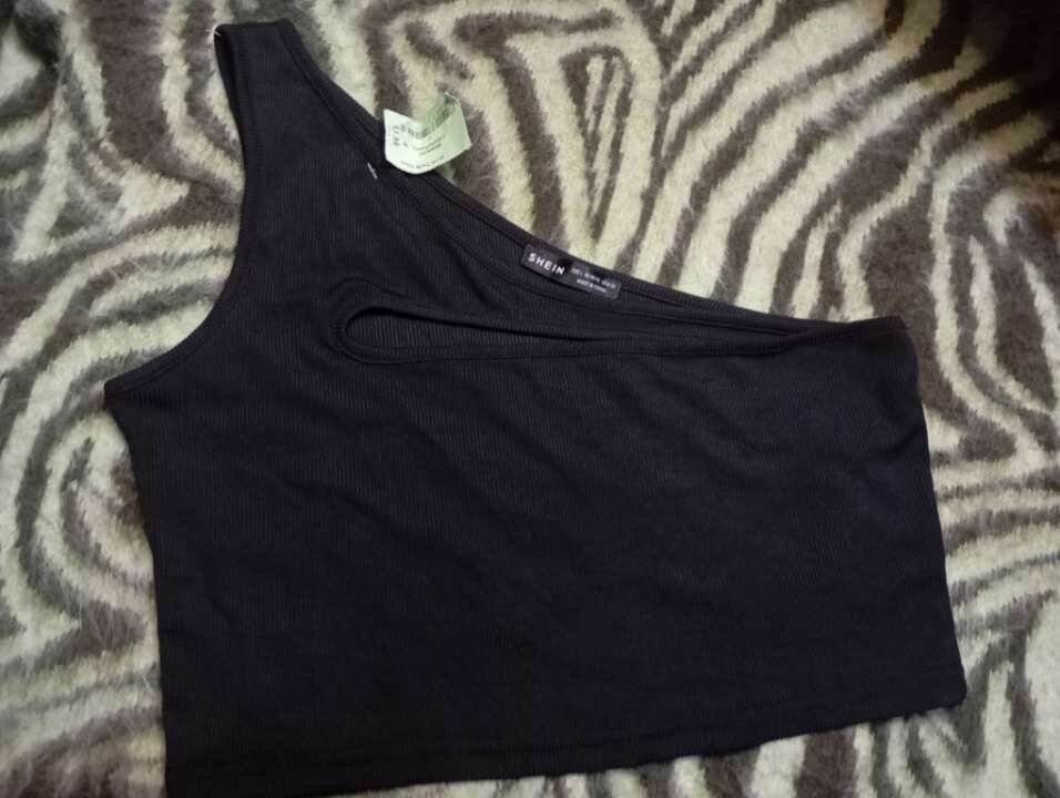 Top asymétrique noir élégant pour femmes, idéal pour soirées et sorties. Confort et style garantis avec sa coupe moderne et son tissu doux. Parfait pour un look tendance et unique.