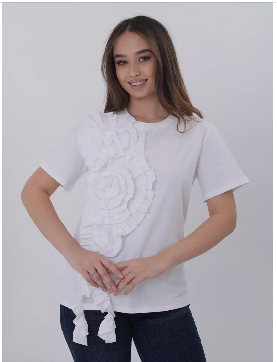 Эта женская футболка с цветочками - истинное воплощение элегантности и нарядности. Ее белый цвет притягивает взгляды и создает образ элегантной дамы. Изготовлена из высококачественного хлопка, она непревзойденно комфортна и приятна на ощупь. Стильный рукав короткой длины и молодежный дизайн делают эту футболку идеальным выбором для праздничного и вечернего наряда. Она одновременно добавляет шарма и легкости к вашему образу. Наденьте эту футболку и почувствуйте себя настоящей красавицей. Покупайте сейчас и порадуйте себя этой уникальной находкой!