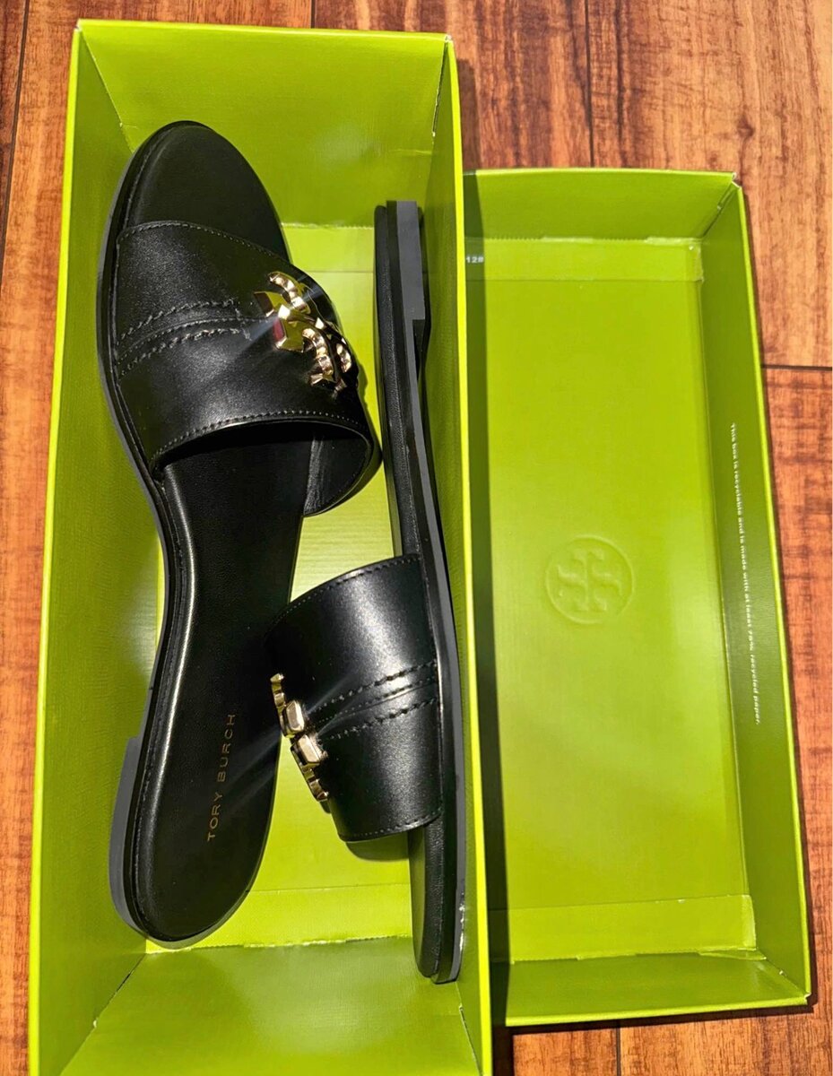Découvrez les mules élégantes de Tory Burch, parfaits pour un look estival chic. Conçus en cuir noir de haute qualité, ces mules présentent un design minimaliste avec un fermoir doré distinctif. Idéal pour les femmes qui apprécient le confort et la sophistication.