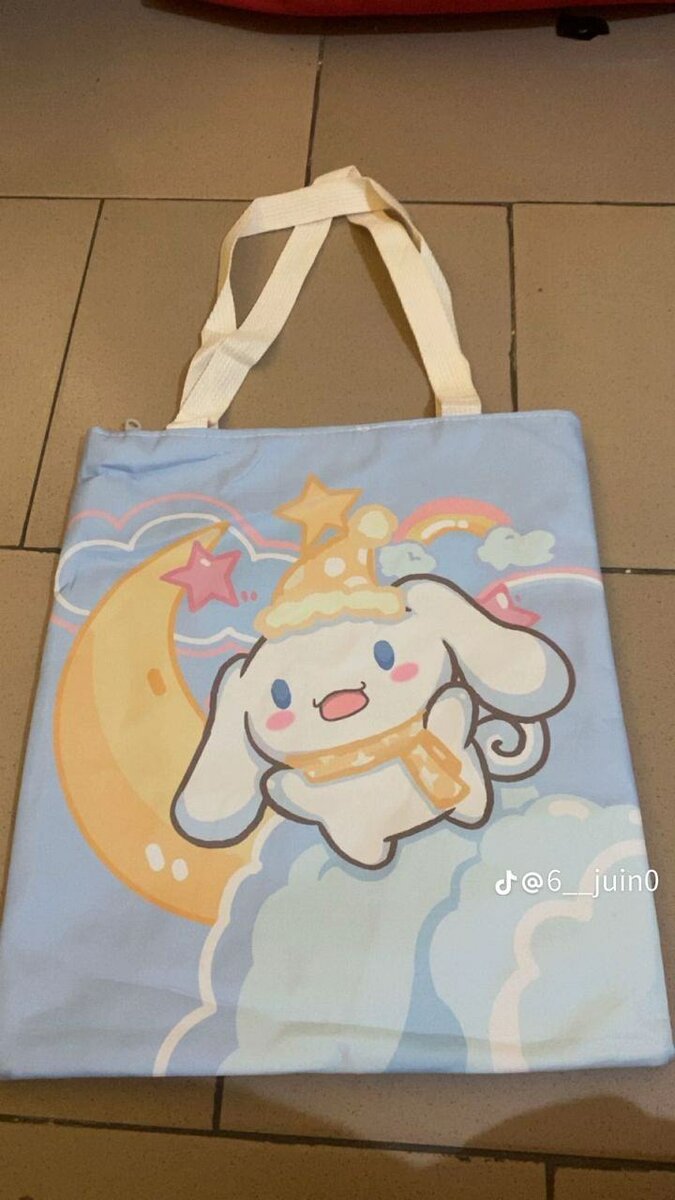 Adorable tote bag enfant avec motif Cinnamoroll. Fabriqué en toile durable, idéal pour l'école ou les sorties. Son design mignon et coloré apporte une touche de fantaisie. Parfait pour les amateurs de personnages kawaii!
