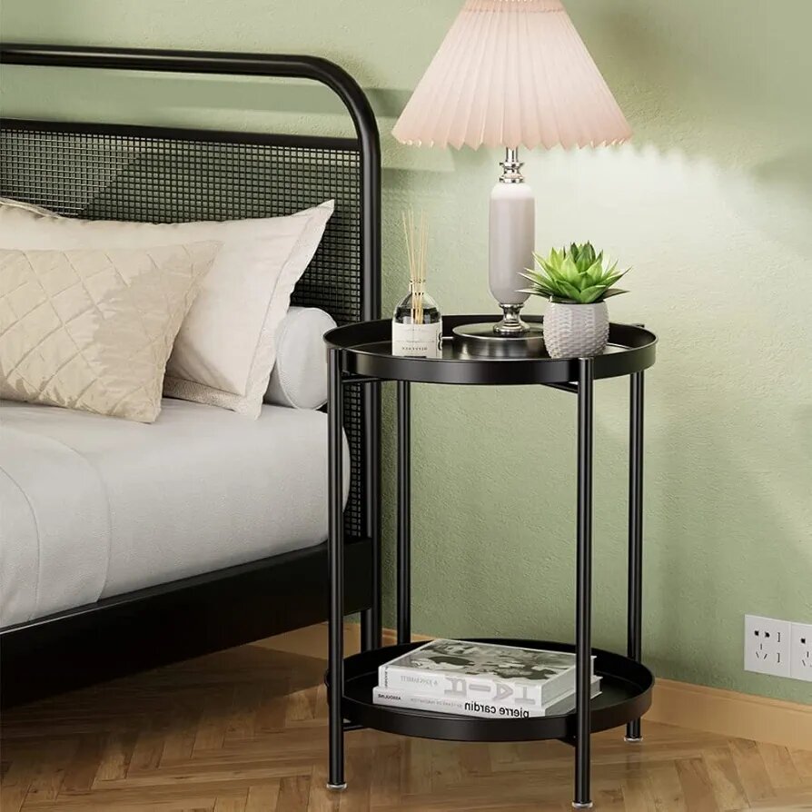 Tray metal end table side table round coffee drink table