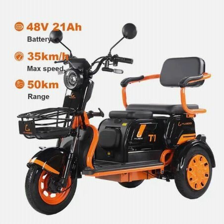 Découvrez notre tricycle électrique 60V 21Ah. Atteignez une vitesse maximale de 35km/h et profitez d'une autonomie allant jusqu'à 60km. Parfait pour des déplacements urbains confortables et écologiques. Équipé de sièges confortables et d'un design moderne, c'est le choix idéal pour une mobilité douce.