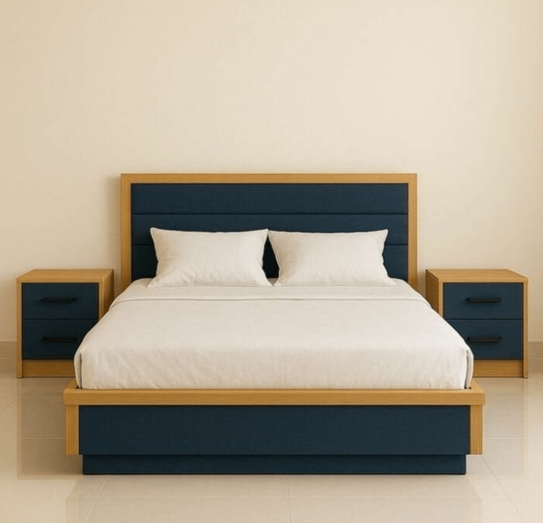 Lit moderne avec tête de lit capitonnée bleu