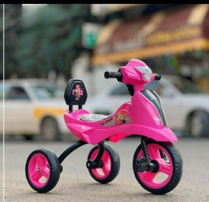 Tricycle enfant rose pour garçon ou fille. Léger et maniable, idéal pour l'extérieur.