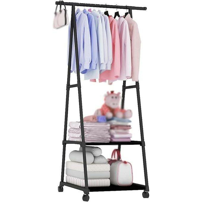 Tringles de placards Support à vêtements avec deux étagères, de couleur noire, 55 × 45 × 157 cm