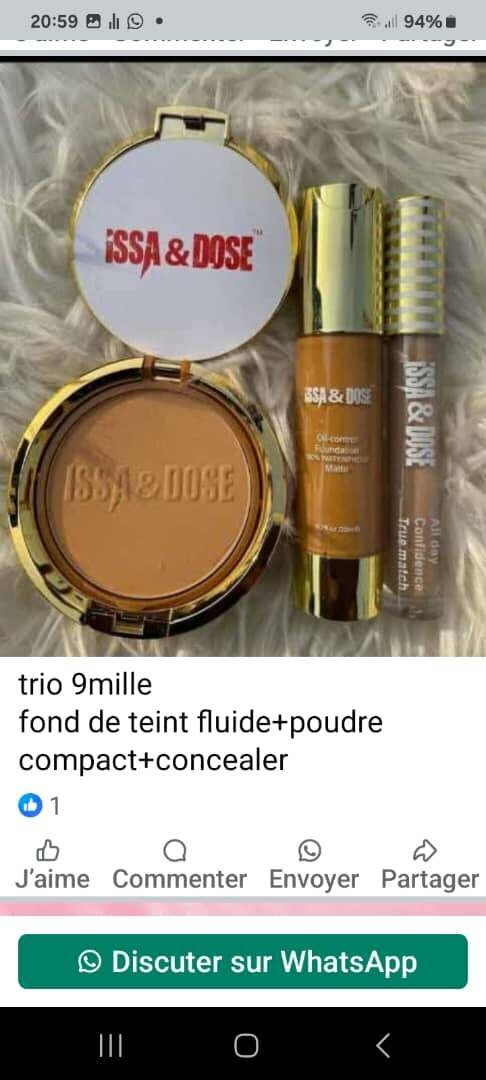 Découvrez le trio maquillage parfait avec fond de teint fluide, poudre compacte et anticernes. Obtenez un teint uniforme et lumineux avec cette combinaison idéale pour un maquillage longue durée. Parfait pour toutes les occasions, ces produits sont conçus pour s’adapter à tous les types de peau. Offrez-vous un teint radieux et impeccable dès aujourd'hui!
