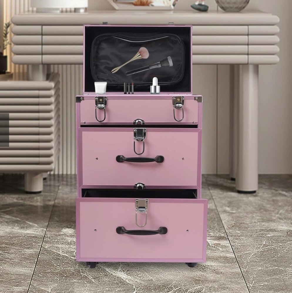 Voyagez en style avec ce trolley maquillage rose élégant et pratique. Conçu avec des compartiments spacieux pour organiser tous vos produits. Parfait pour les professionnels et amateurs de beauté.