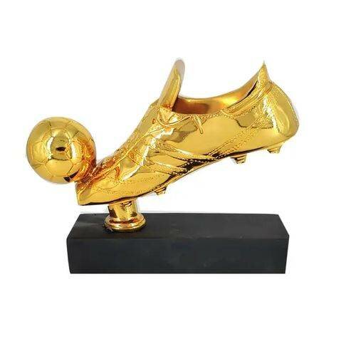 Véritable réplique du Soulier dor de football. Qualité exceptionnelle professionnelle. Copie presque identique au Soulier dor de la FIFA 2014. Reproduction du trophée du Soulier dor, La finition est de superbe qualité recouverte dune peinture dorée et fabriquée en résine mélangée avec du fer.