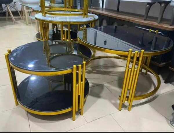 Tables gigognes en marbre et métal doré