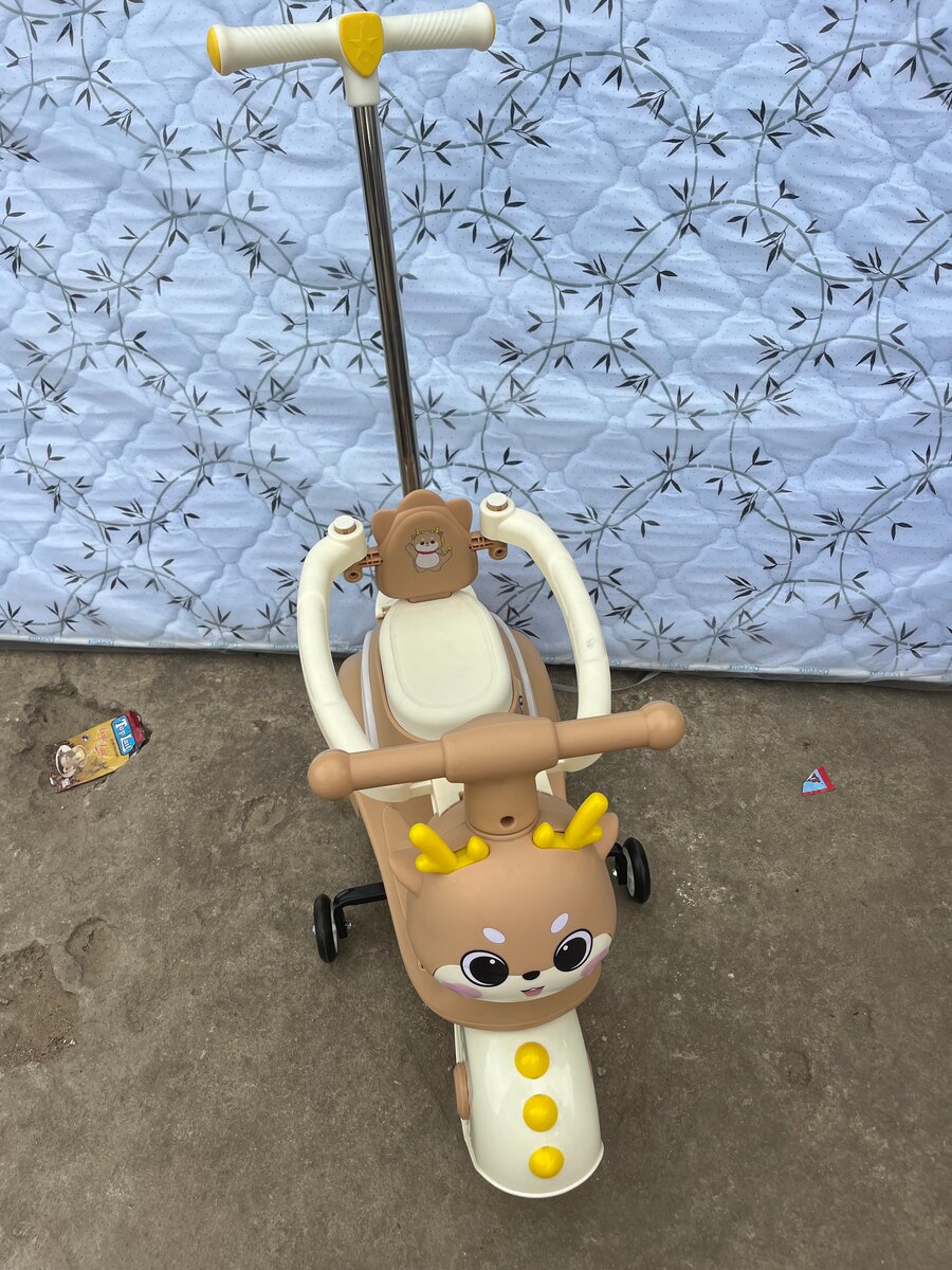 Cette adorable trottinette pour enfants, avec son design de cerf, est parfaite pour les petites promenades. Équipée d'une poignée pour les parents, elle offre sécurité et confort. Idéale pour les enfants en bas âge, cette trottinette stimulera l'autonomie et l'équilibre.