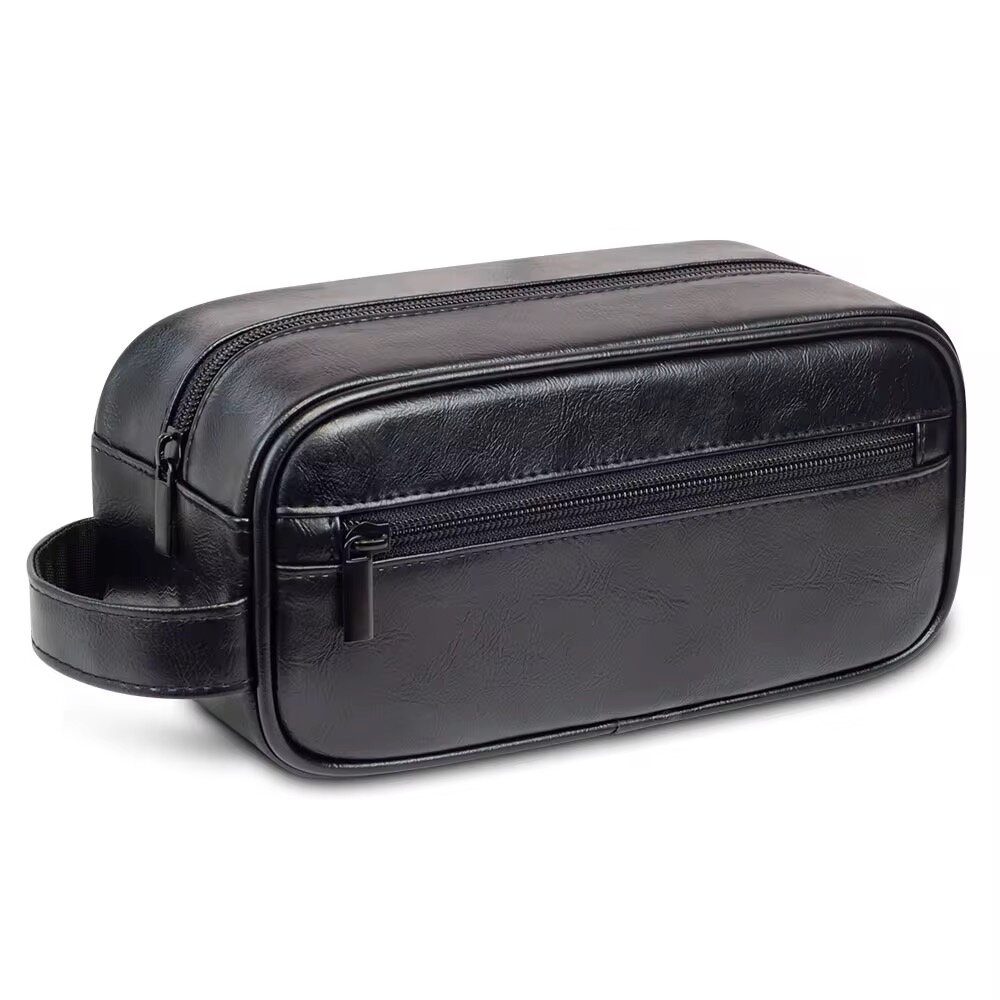 Cette trousse de toilette en cuir est l'accessoire parfait pour vos voyages. Dotée d'une poignée renforcée et d'une fermeture éclair en bronze, elle offre solidité et style. Ses dimensions compactes (23x11x10,5 cm) la rendent facile à transporter. Idéale pour les hommes recherchant une solution pratique et élégante pour ranger leurs produits de soins.