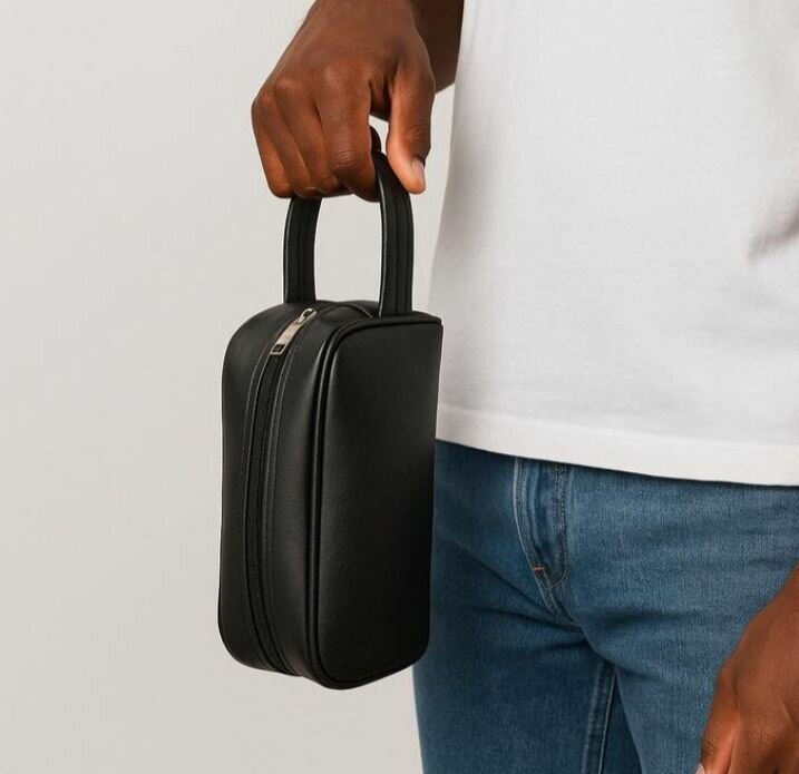 Idéale pour voyager, cette trousse de toilette en cuir robuste est à la fois compacte et spacieuse. Conçue pour transporter facilement vos essentiels de bain et de soins personnels, elle est parfaite pour les hommes modernes en déplacement. Son design élégant et sa poignée pratique en font un choix incontournable pour ceux qui apprécient la qualité et le style.
