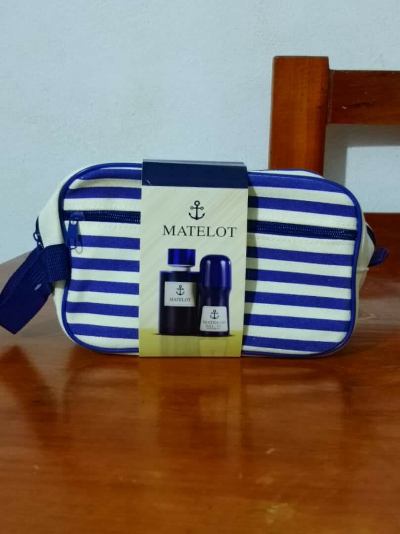 Trousse de toilette élégante avec parfums Matelot. Idéale pour ranger vos essentiels de beauté. Design rayé moderne, parfait pour la maison ou le voyage. Un cadeau idéal pour les amateurs de soins personnels.
