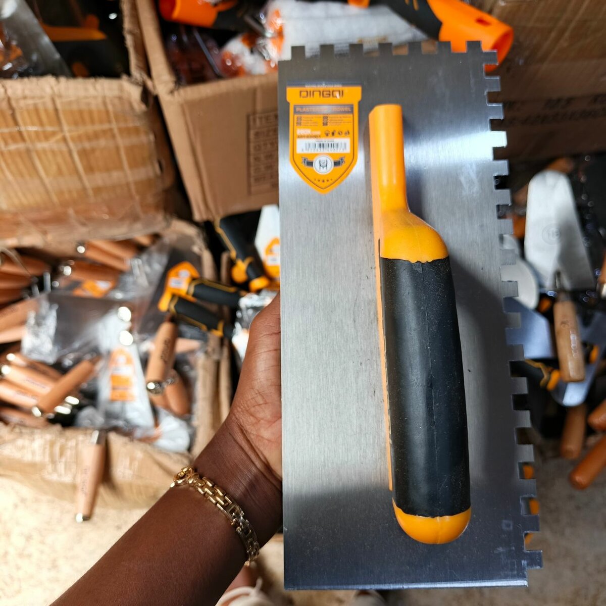 Truelle dentelée professionnelle avec poignée ergonomique. Idéale pour poser le carrelage. Conception durable en acier inoxydable. Outil indispensable pour les artisans et les amateurs de bricolage.