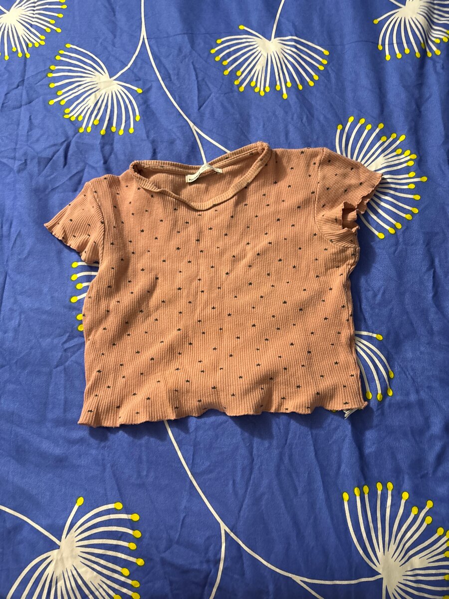 Adorable t-shirt à pois pour fille, idéal pour un look décontracté et confortable. Fabriqué en tissu doux, il garantit une sensation agréable sur la peau. Parfait pour les journées d'été ou pour superposer sous un pull en hiver. Ce t-shirt s'accorde facilement avec un jean ou une jupe.