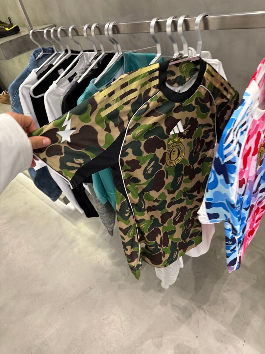T-shirt camouflage Adidas x Bape pour homme. Conçu pour les fans de streetwear et de mode urbaine. Matière confortable et respirante.