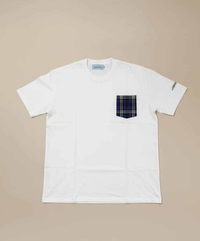 T-shirt blanc classique avec une poche à motif tartan, idéal pour un style décontracté et moderne. Confortable et élégant, parfait pour toutes les occasions.