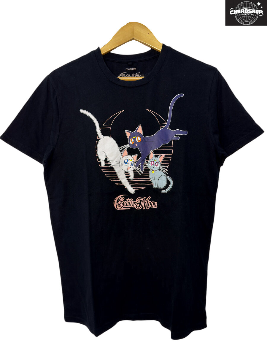 Découvrez ce T-shirt noir inspiré de Sailor Moon avec ses adorables chats. Parfait pour les fans d'anime, ce T-shirt en coton offre confort et style décontracté. Parfait pour une journée décontractée ou une sortie entre amis!