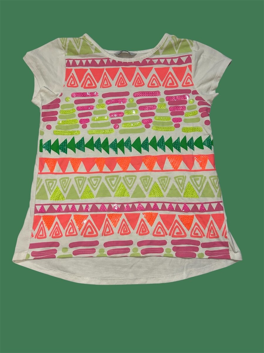 T-shirt colorée à imprimés géométriques, parfait pour apporter une touche de joie aux tenues d'été de votre fille. Fabriqué en coton doux pour un confort optimal. Idéal pour l'école, le parc ou toute sortie décontractée.