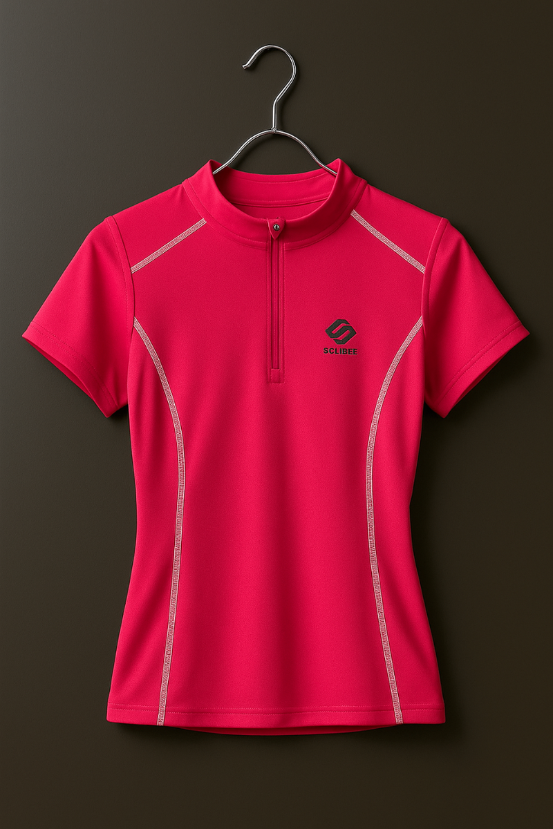 T-shirt de sport pour femme en tissu respirant, idéal pour vos séances de fitness ou courses en extérieur. Confortable et stylé avec une fermeture éclair, adapté pour un look athlétique.