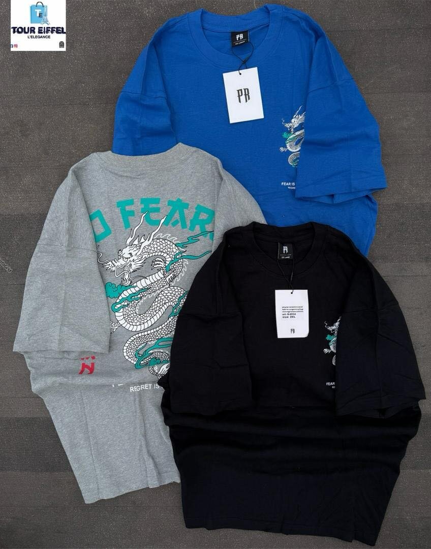 T-shirt moderne avec motif dragon, disponible en bleu, noir et gris. Conçu pour le confort quotidien avec un style unique. Idéal pour les amateurs de mode et de streetwear. Portez-le pour une touche d'audace dans votre look.