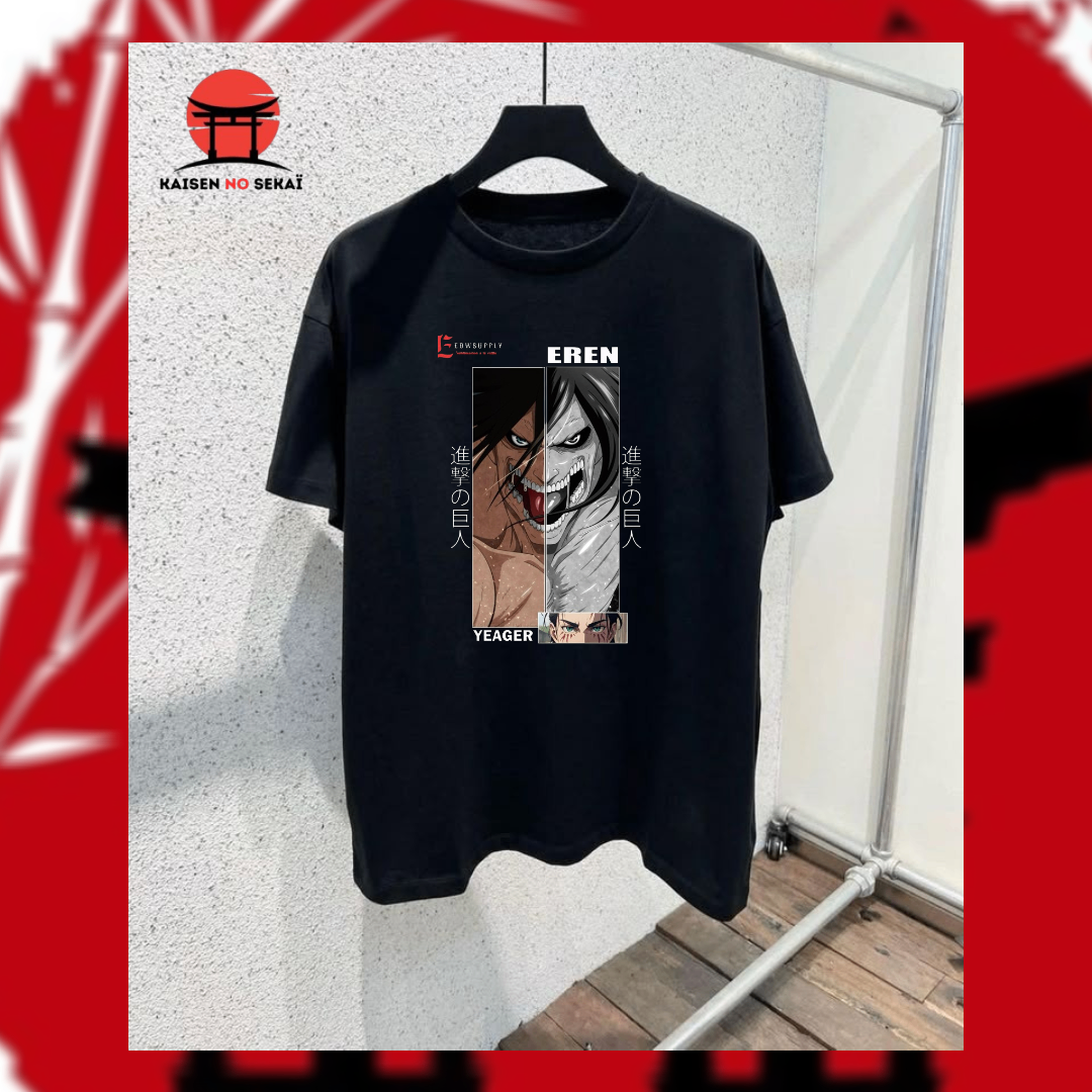 Exprimez votre passion pour l'anime avec ce t-shirt Eren Yeager au design captivant. Fabriqué à partir de coton doux pour un confort optimal, c'est un incontournable pour tout fan de l'attaque des Titans. Parfait pour un style décontracté ou une sortie entre amis.