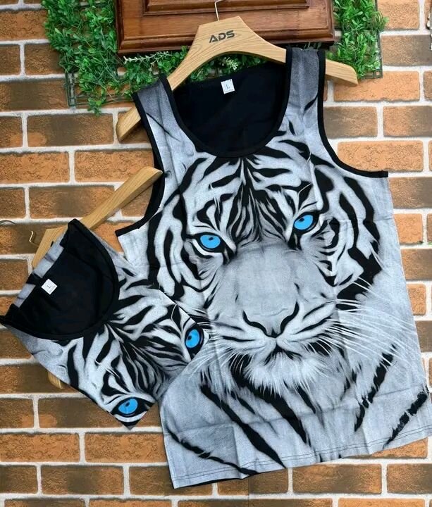 Découvrez ce t-shirt col roulé avec un imprimé tigre aux yeux bleus, parfait pour un look décontracté et tendance. Livré avec un masque assorti.