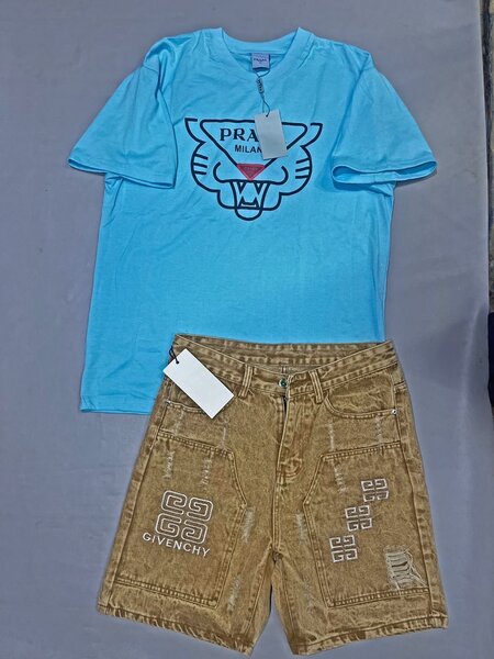 Optez pour ce t-shirt tendance et ce short en jean délavé pour un look décontracté parfait. Idéal pour les sorties estivales, cet ensemble offre confort et style. Le t-shirt arbore un design graphique accrocheur, tandis que le short en jean présente un motif unique. Parfait pour un style urbain et moderne.