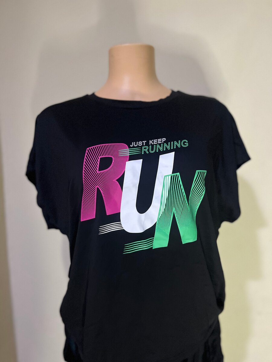 Optez pour le style et le confort avec ce T-shirt noir pour femme, idéal pour la course ou les journées décontractées. Avec son design attrayant "Just Keep Running", c'est le choix parfait pour les passionnées de sport. Fabriqué en coton doux, il offre une grande respirabilité et une liberté de mouvement totale. Parfait pour vos séances de running ou vos tenues décontractées. Faites-en votre allié mode dès maintenant!