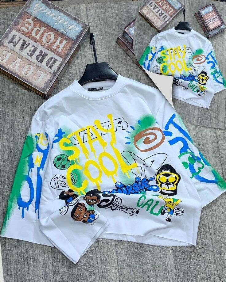 T-shirt blanc pour enfants avec imprimé graffiti Street Cool. Idéal pour les activités décontractées ou les sorties en ville.