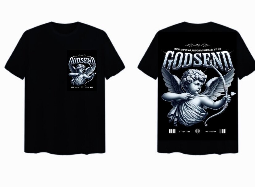 Découvrez le t-shirt graphique "Godsend" avec un ange audacieux sur fond noir. Fabriqué en coton doux pour un confort optimal, ce t-shirt est parfait pour ajouter une touche unique à votre garde-robe. Idéal pour un look décontracté chic.