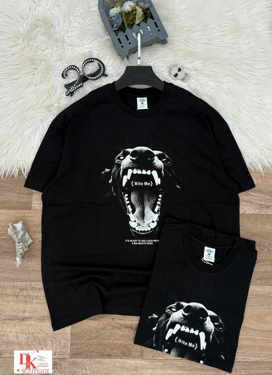 Exprimez-vous avec ce t-shirt noir audacieux arborant un design graphique de chien féroce. Parfait pour un look branché et affirmé. Idéal pour les occasions décontractées ou les sorties entre amis. Un cadeau parfait pour les passionnés de mode originale.