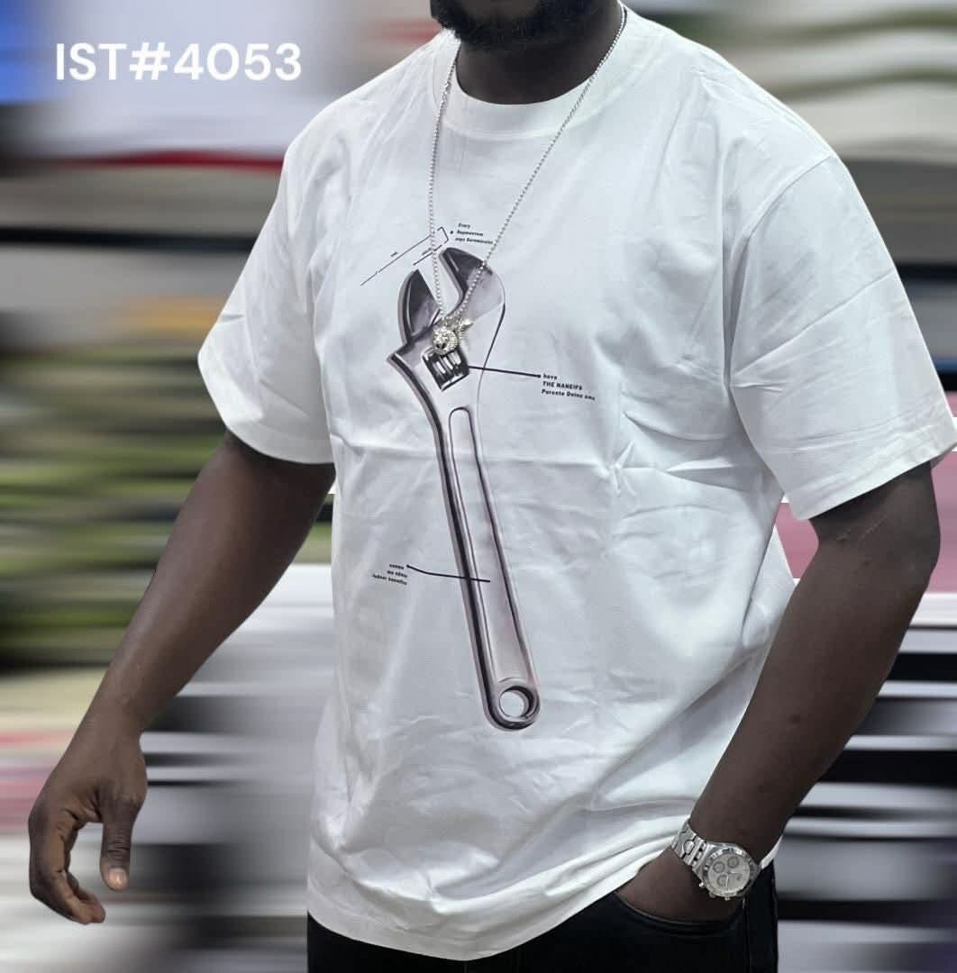 T-shirt blanc tendance avec impression de clé à molette. Fabriqué en coton doux pour un confort optimal. Idéal pour un look décontracté et original. Parfait pour les amateurs de bricolage et de mode.