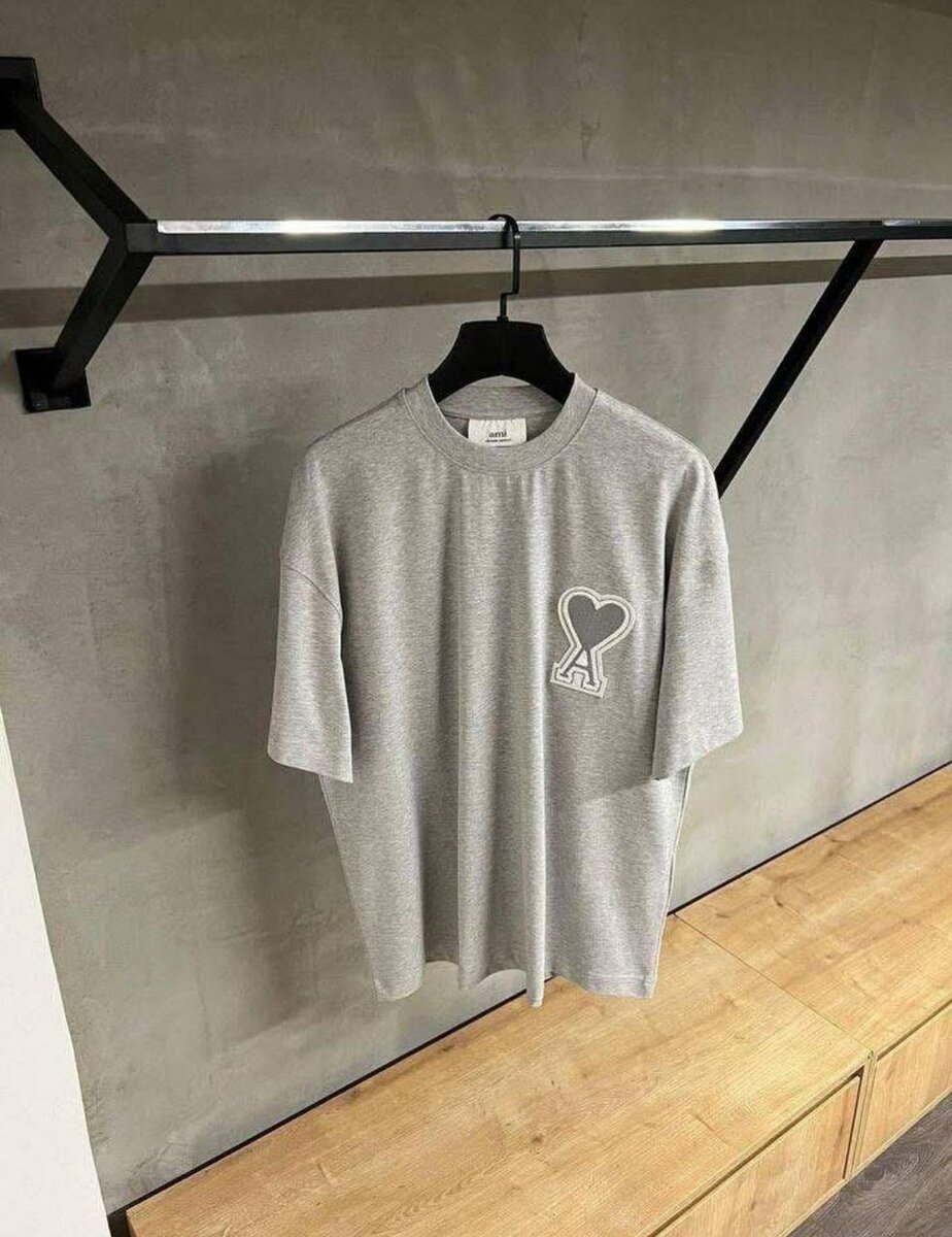 T-shirt gris en coton avec un motif cœur blanc. Conçu pour un look décontracté et tendance. Idéal pour les hommes qui aiment la mode streetwear. Tissu de haute qualité pour un confort maximal.