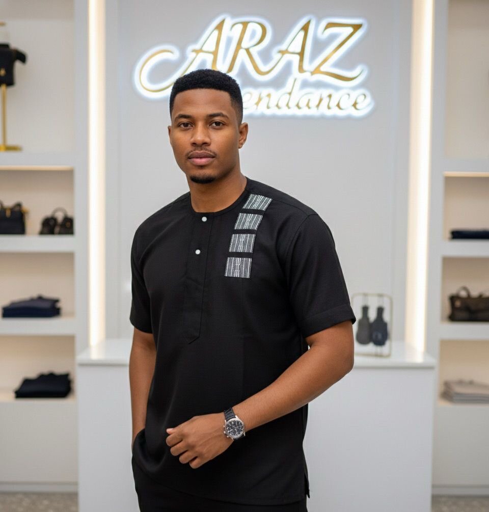 Découvrez notre t-shirt noir élégant pour hommes, parfait pour les occasions spéciales. Confortable et tendance avec des détails subtils sur l'épaule, il rehaussera votre style. Idéal pour les événements ou une sortie entre amis.
