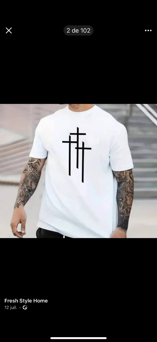T-shirt homme avec motif croix épuré. Parfait pour un style décontracté et tendance. Fabriqué en coton doux pour un confort optimal, idéal pour un usage quotidien ou des sorties entre amis.