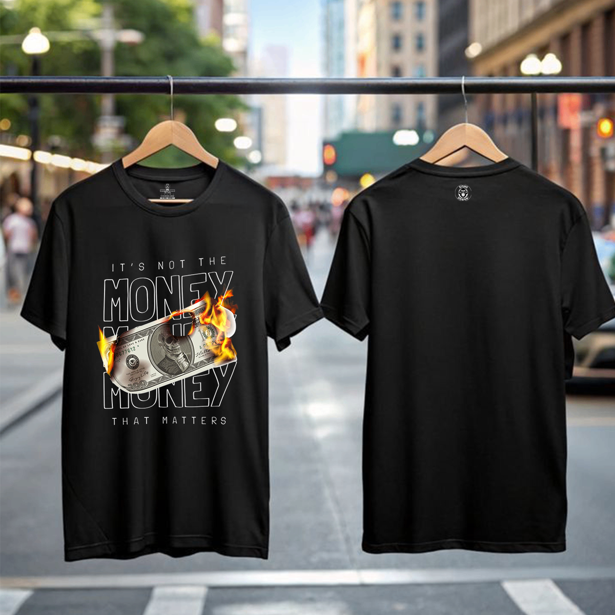 Découvrez notre T-shirt homme avec imprimé moderne "It's Not the Money That Matters". Fabriqué en coton doux, idéal pour un look tendance et décontracté. Parfait pour une tenue quotidienne stylée.